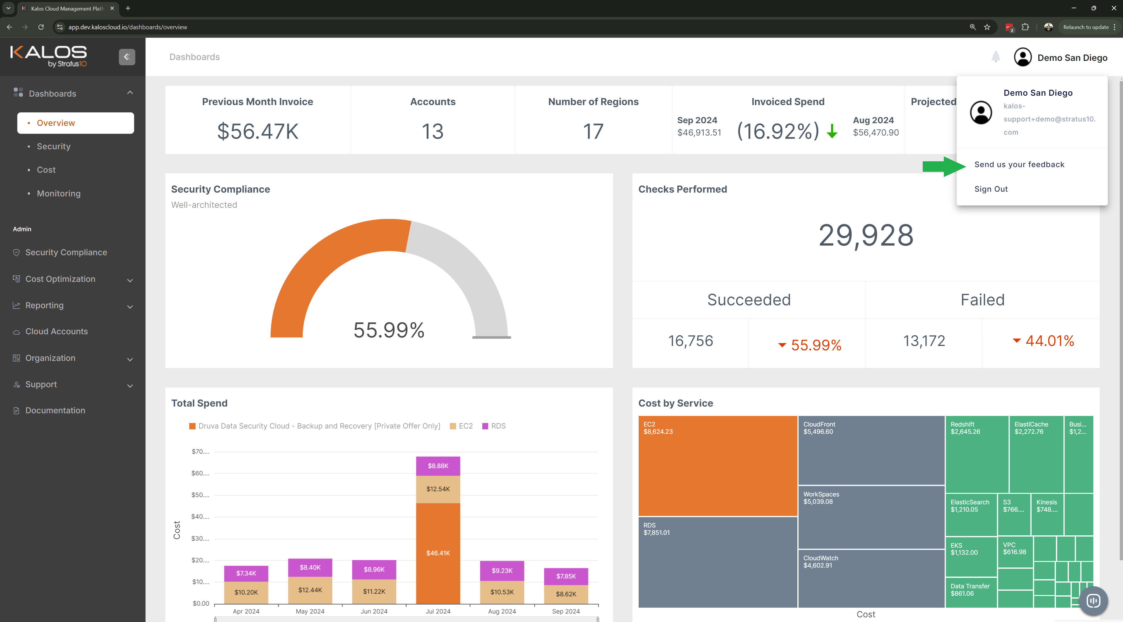 There is a new way to provide feedback on your Kalos experience by clicking on the "Send us your feedback" link under your user name.