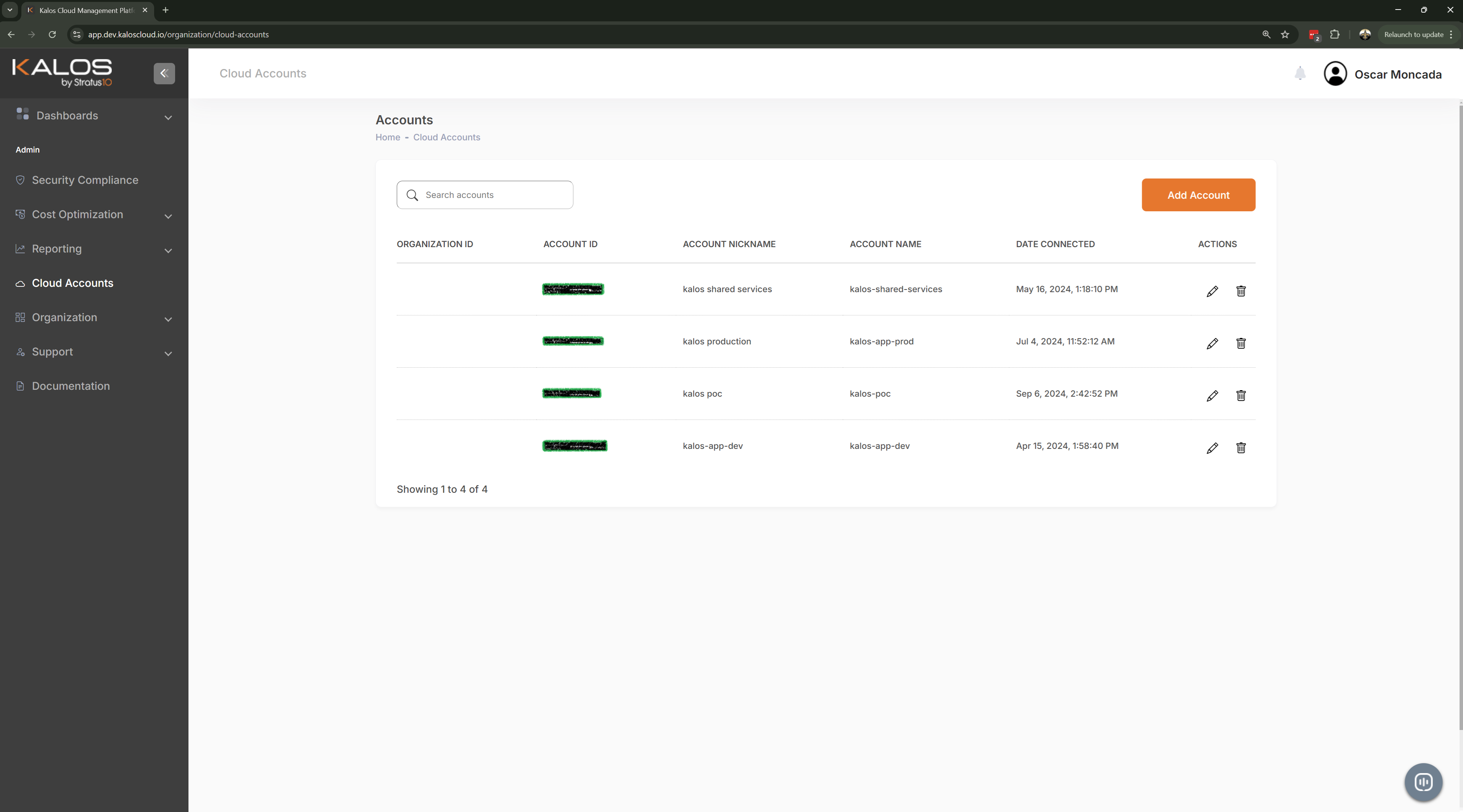 We've added the ability to assign a nickname to each of your cloud accounts so you can more easily identify them in across the Kalos platform.