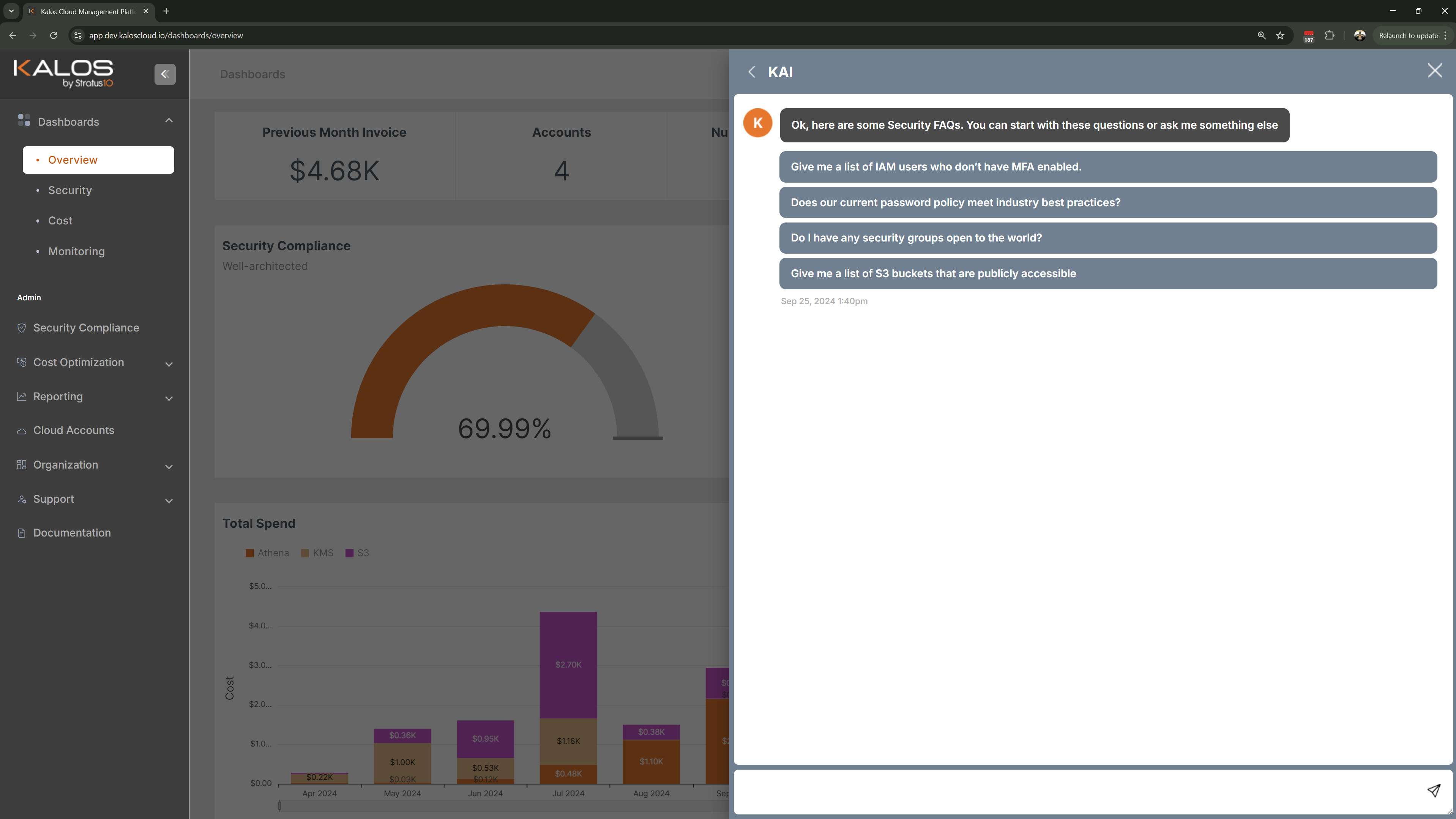 KAI has been enhanced to better understand the configuration of your AWS infrastructure so you can ask questions regarding your infrastructure such as the following:
