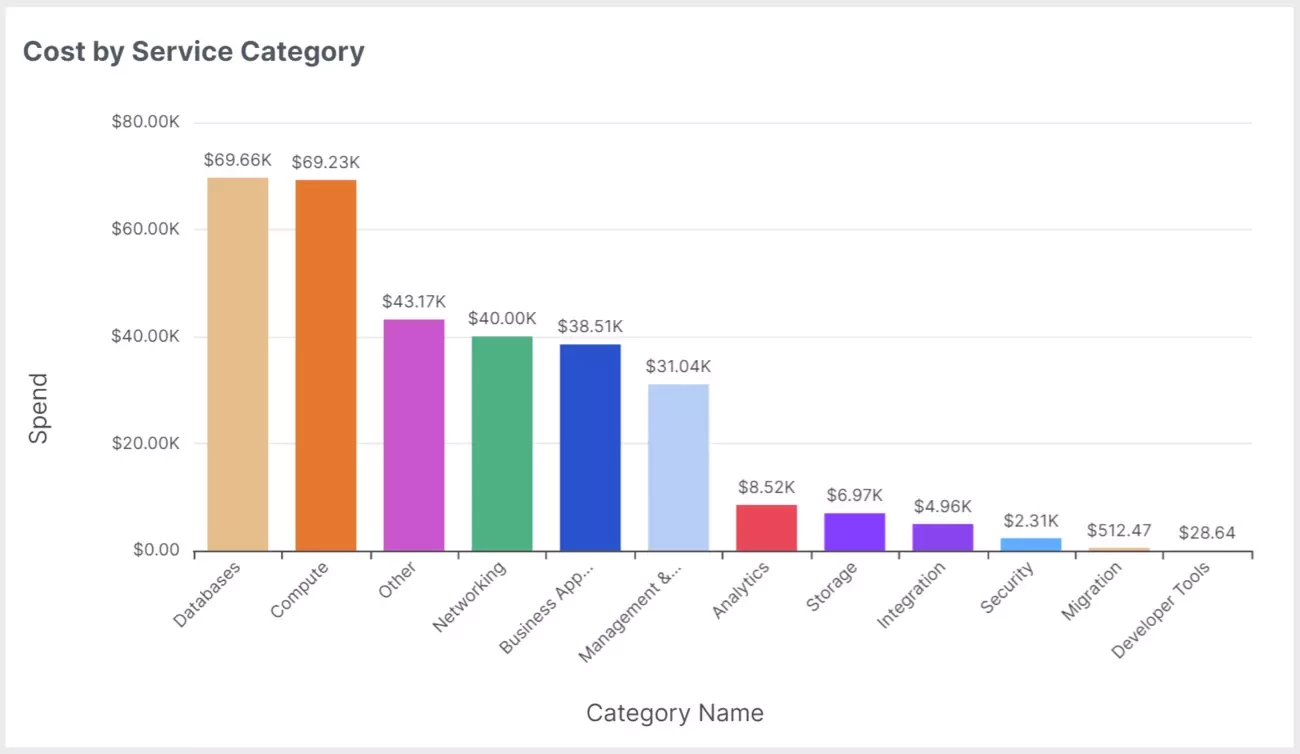 - Cost optimization: Pinpoint where your cloud spend is concentrated—whether in compute, databases, networking, or storage—to identify areas for potential cost savings.